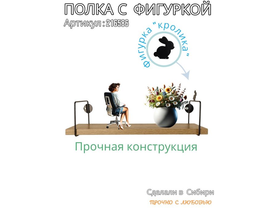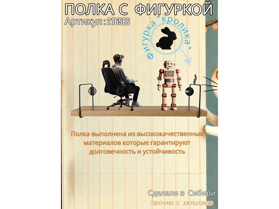 Полка с фигуркой кролика "ABILOVE-216586" размер 10х40см ,черный ,дуб сонома