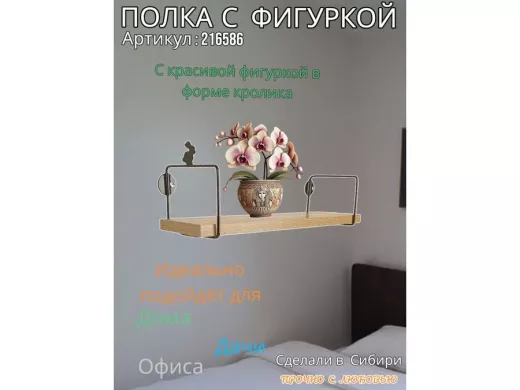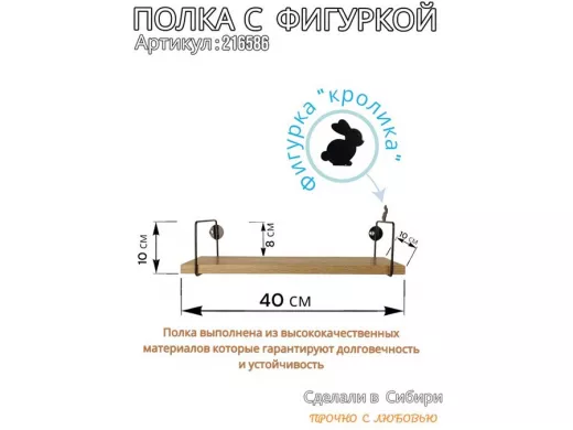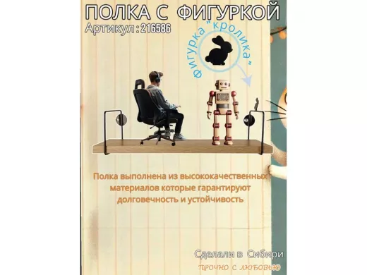 В корзину Купить в 1 клик Полка с фигуркой кролика "ABILOVE-216586" размер 10х40см ,черный ,дуб сонома