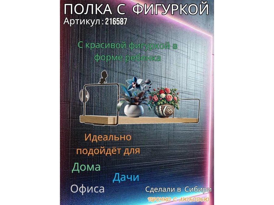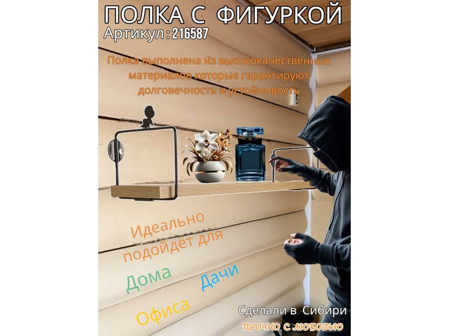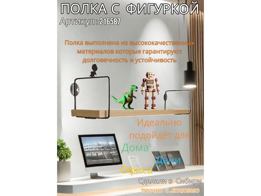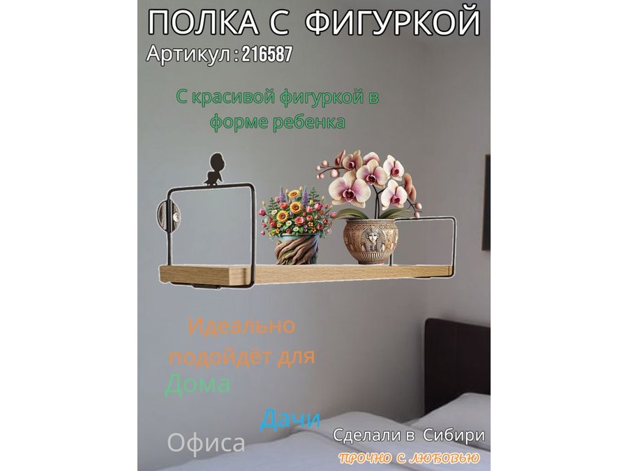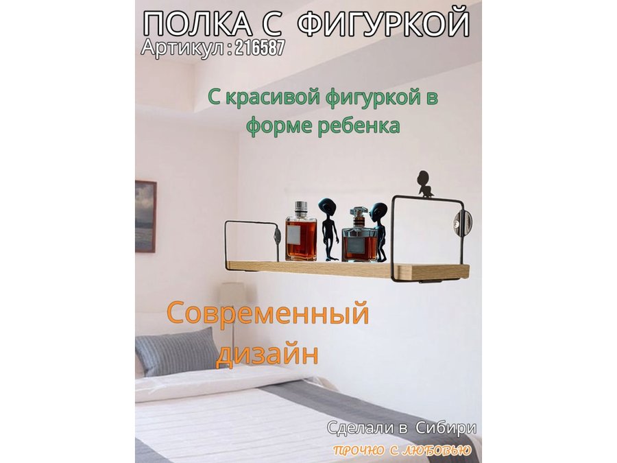 • Интересная полка с фигуркой, позволит разнообразить интерьер, сделать его непохожим, уникальным, запоминающимся.