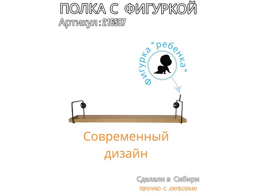 В корзину Купить в 1 клик Полка с фигуркой ребенка "ABILOVE-216587" размер 10х60см ,черный ,дуб сонома