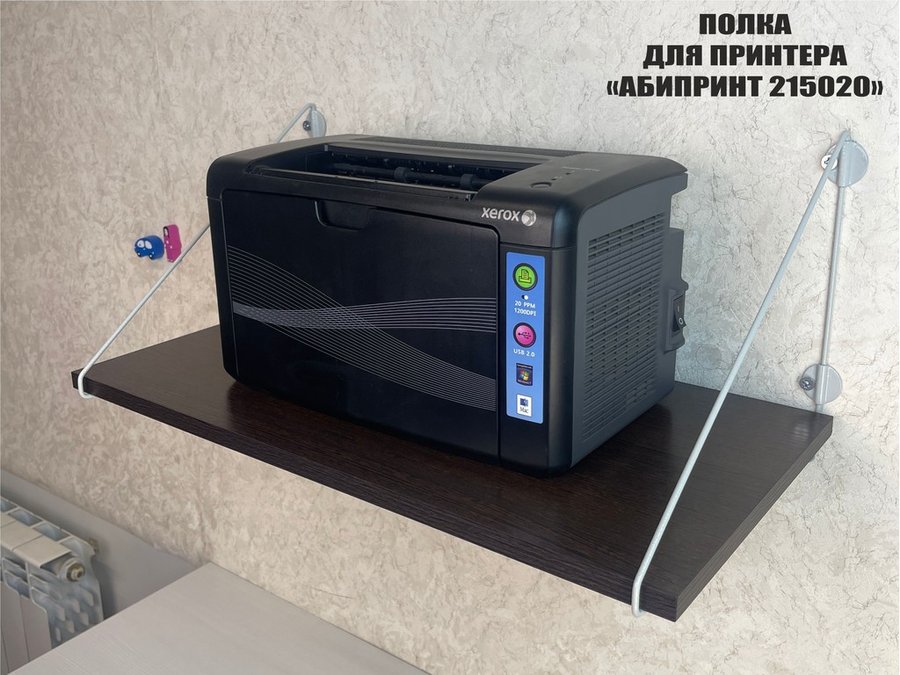 Полка надежно крепится к стене при помощи анкеров или шурупов с дюбелями, на ней можно разместить принтер, сканер, МФУ и многое другое