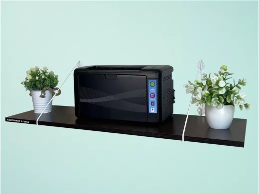 • Полка надежно крепится к стене при помощи анкеров или шурупов с дюбелями, на ней можно разместить принтер, бумагу