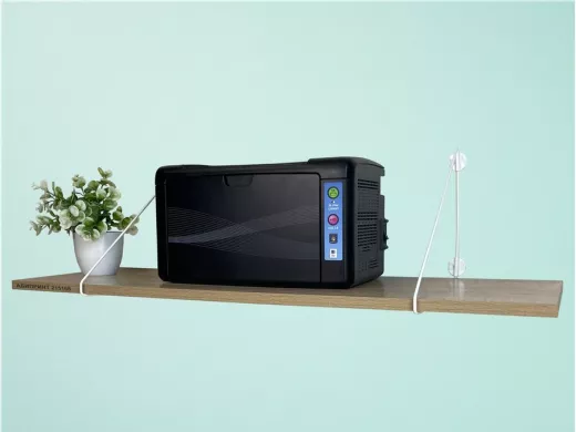 • Полка надежно крепится к стене при помощи анкеров или шурупов с дюбелями, на ней можно разместить принтер, бумагу