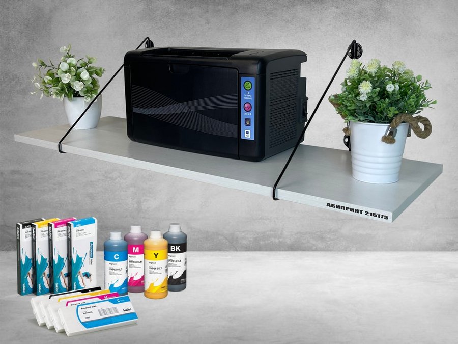 Полка для принтера "АБИПРИНТ 215173" высота 26 см размер 90х30 см черный и сосна выбеленная