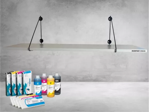 - Полка надежно крепится к стене при помощи анкеров или шурупов с дюбелями, на ней можно разместить принтер, бумагу