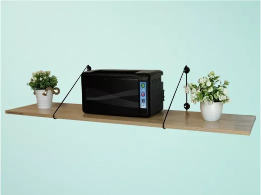 • Полка надежно крепится к стене при помощи анкеров или шурупов с дюбелями, на ней можно разместить принтер, бумагу