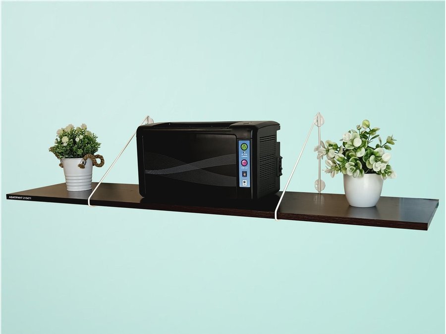 • Полка надежно крепится к стене при помощи анкеров или шурупов с дюбелями, на ней можно разместить принтер, бумагу