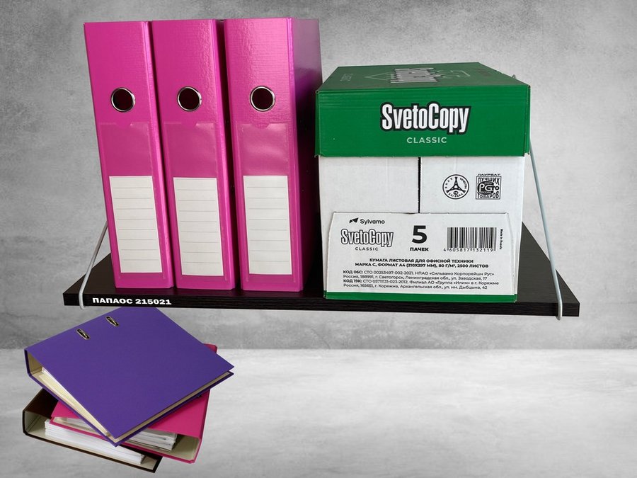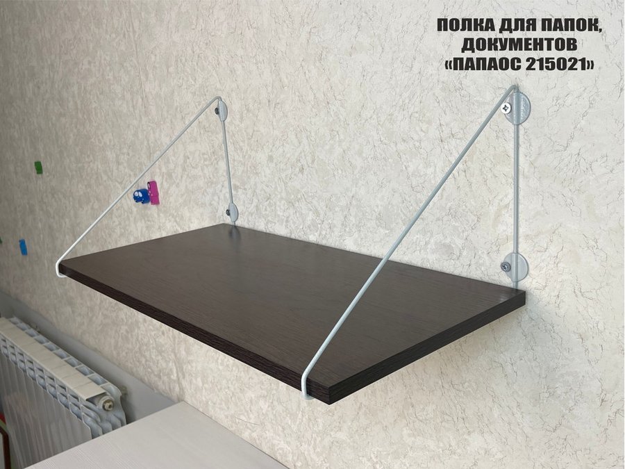 • Полка надежно крепится к стене при помощи анкеров или шурупов с дюбелями, на ней можно разместить папки, документы,бумагу и многое другое