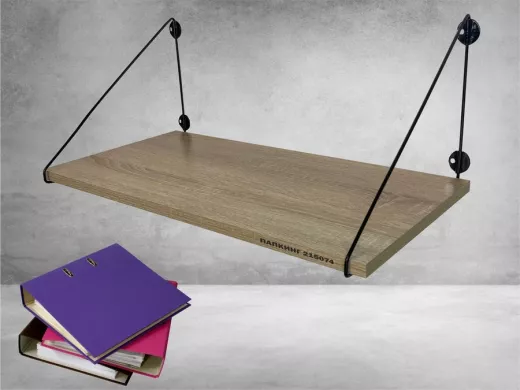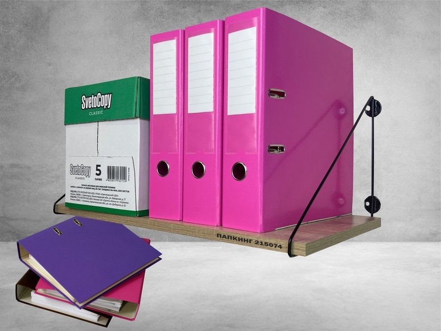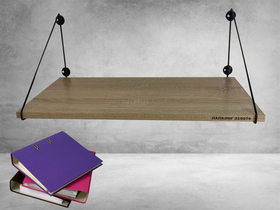 • Полка надежно крепится к стене при помощи анкеров или шурупов с дюбелями, на ней можно разместить папки, документы и многое другое