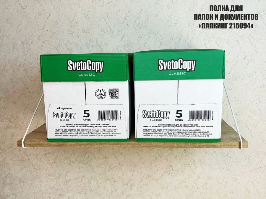 В корзину Купить в 1 клик Полка для папок и документов "ПАПКИНГ 215094" высота 26 см размер 60х30 см белый и дуб сонома