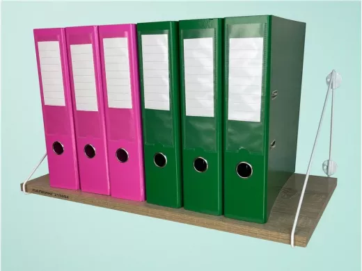 • Полка надежно крепится к стене при помощи анкеров или шурупов с дюбелями, на ней можно разместить папки, документы и многое другое
