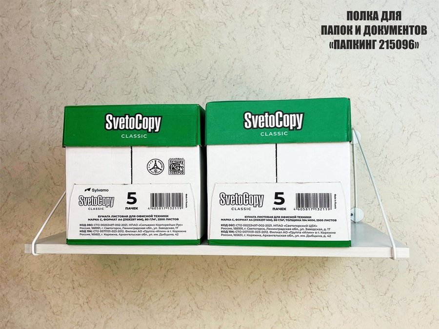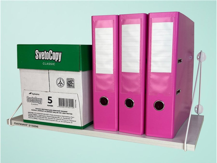 Полка для папок и документов "ПАПКИНГ 215096" высота 26 см размер 60х30 см белый и сосна выбеленная