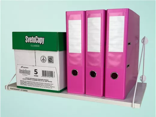 • Полка надежно крепится к стене при помощи анкеров или шурупов с дюбелями, на ней можно разместить папки, документы и многое другое