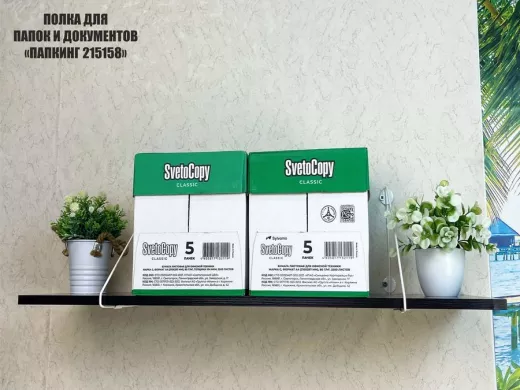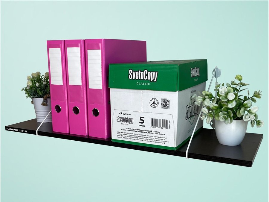 • Полка надежно крепится к стене при помощи анкеров или шурупов с дюбелями, на ней можно разместить папки, документы