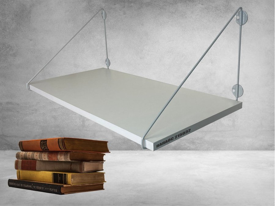 Полка для книг "КНИГОКРЕП 215032" высота 26 см размер 60х30 см серый и белый шагрень