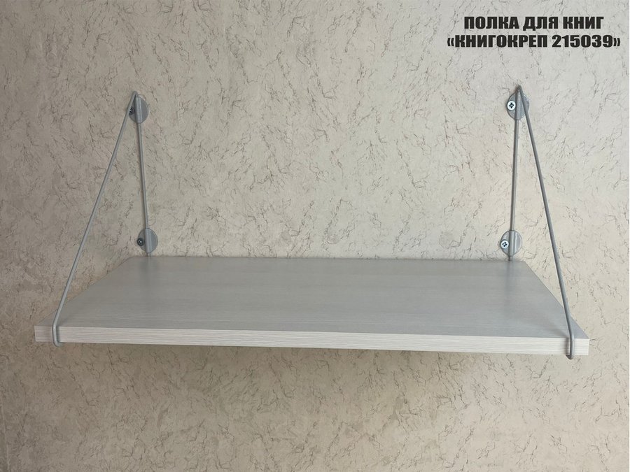 Полка для книг "КНИГОКРЕП 215039" высота 26 см размер 60х30 см серый и сосна выбеленная