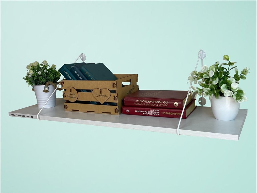 В корзину Купить в 1 клик Полка для книг "КНИГОКРЕП 215142" высота 26 см размер 90х30 см белый и сосна выбеленная