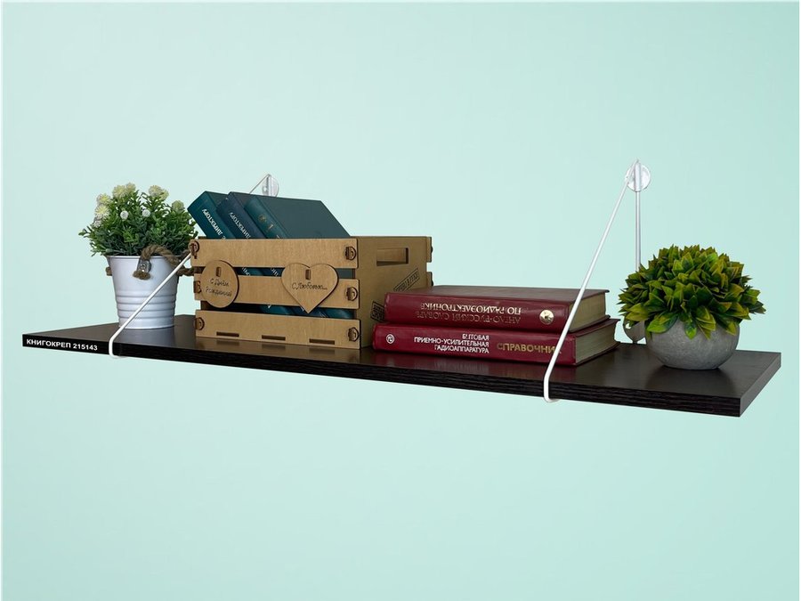 В корзину Купить в 1 клик Полка для книг "КНИГОКРЕП 215143" высота 26 см размер 90х30 см белый и венге