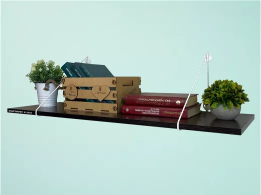 • Полка надежно крепится к стене при помощи анкеров или шурупов с дюбелями, на ней можно разместить книги, журналы