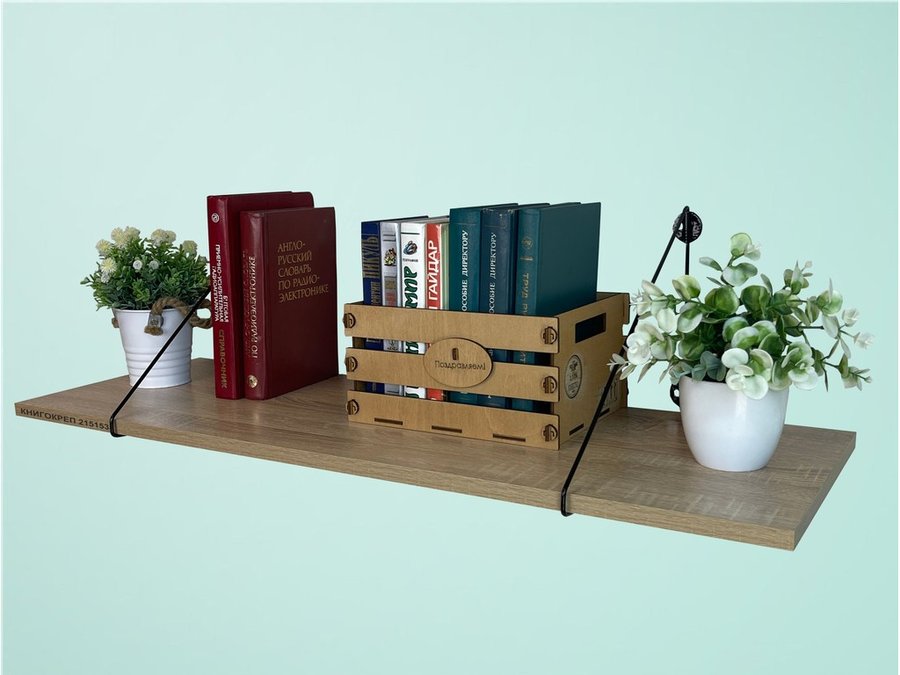 Полка для книг "КНИГОКРЕП 215153" высота 26 см размер 90х30 см черный и дуб сонома