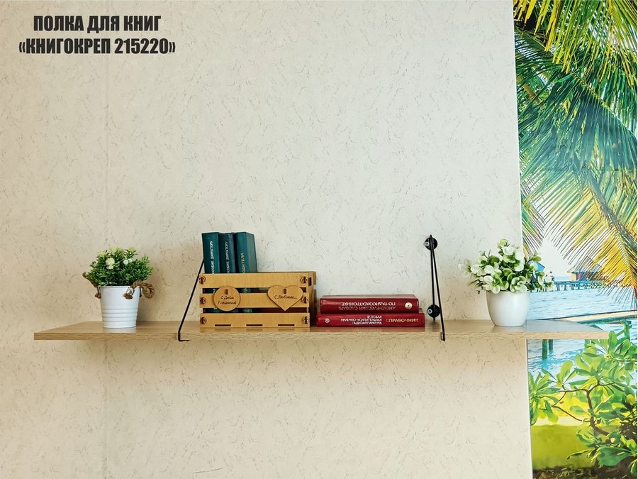 Полка для книг "КНИГОКРЕП 215220" высота 26 см размер 120х30 см черный и дуб сонома