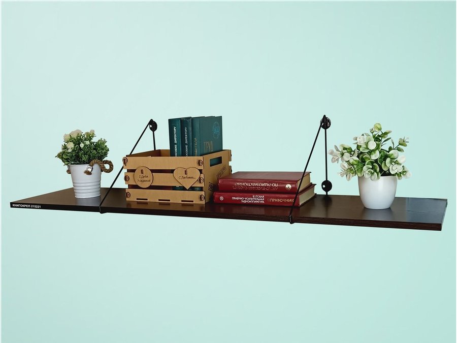• Полка надежно крепится к стене при помощи анкеров или шурупов с дюбелями, на ней можно разместить книги, журналы