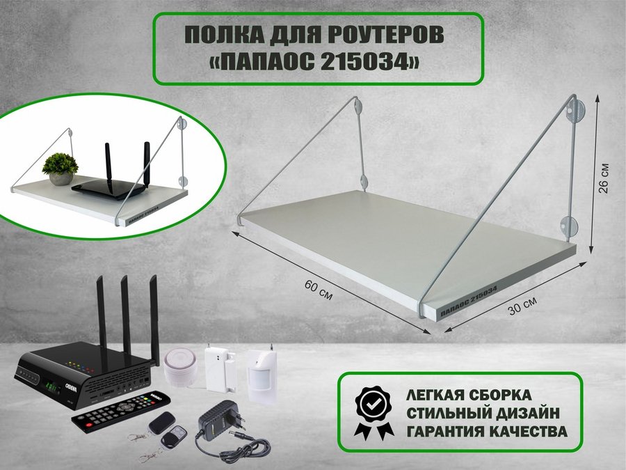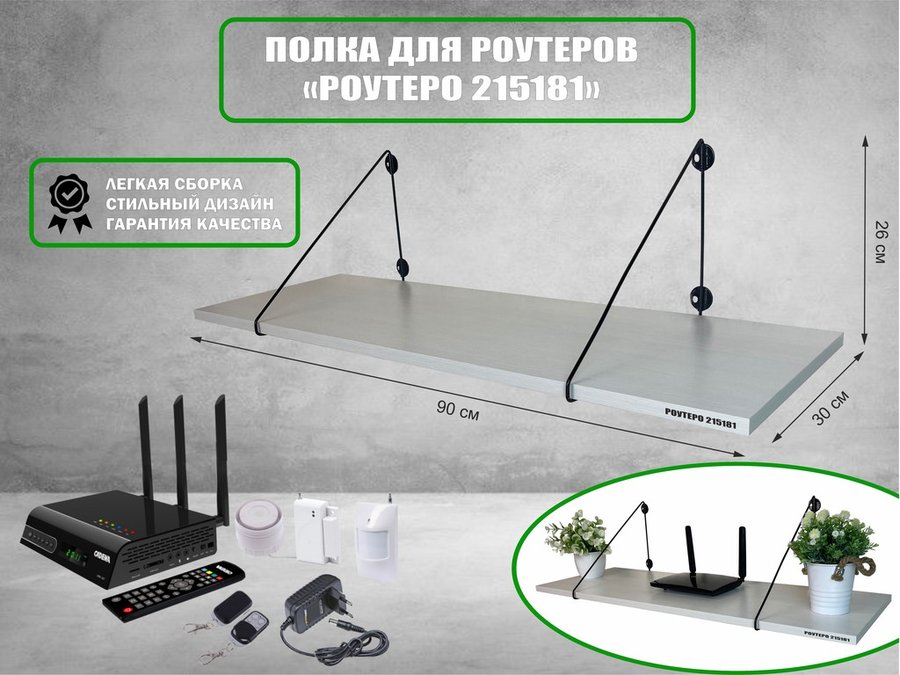 В корзину Купить в 1 клик Полка для роутеров "РОУТЕРО 215034" высота 26 см размер 60х30 см серый и белый шагрень