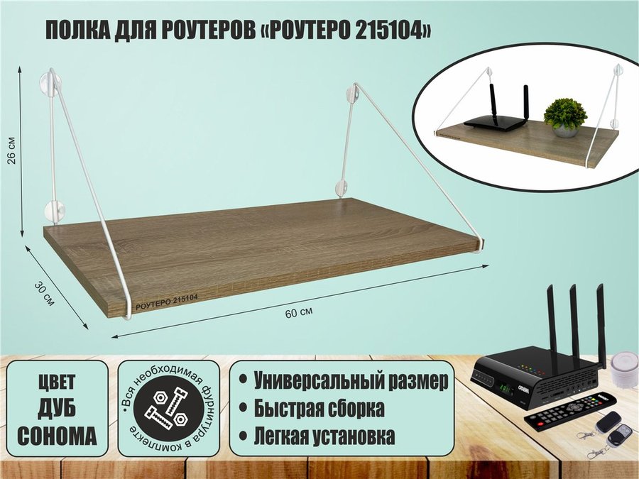 В корзину Купить в 1 клик Полка для роутеров "РОУТЕРО 215179" высота 26 см размер 90х30 см белый и дуб сонома