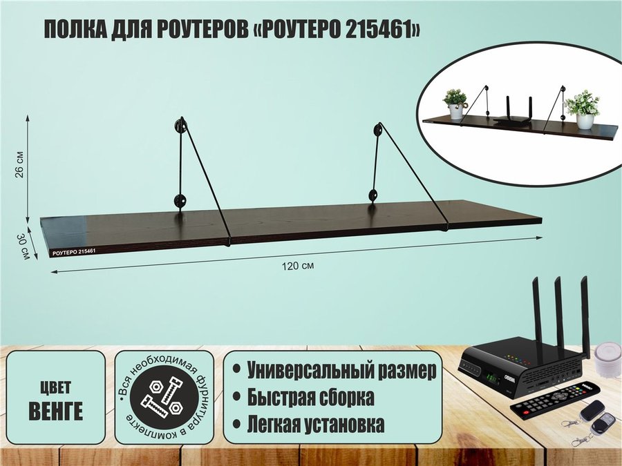 В корзину Купить в 1 клик Полка для роутеров "РОУТЕРО 215461" высота 26 см размер 120х30 см черный и венге