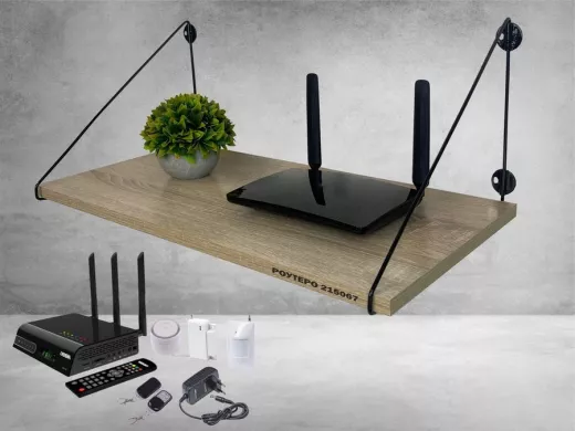 - Полка надежно крепится к стене при помощи анкеров или шурупов с дюбелями, на ней можно разместить роутер и многое другое