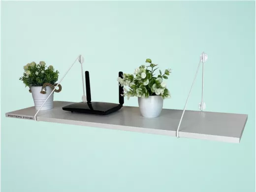 - Полка надежно крепится к стене при помощи анкеров или шурупов с дюбелями, на ней можно разместить роутер
