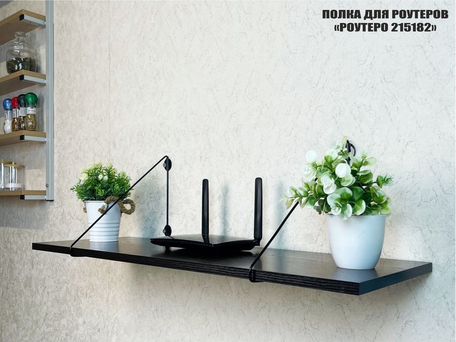 • Полка надежно крепится к стене при помощи анкеров или шурупов с дюбелями, на ней можно разместить роутер