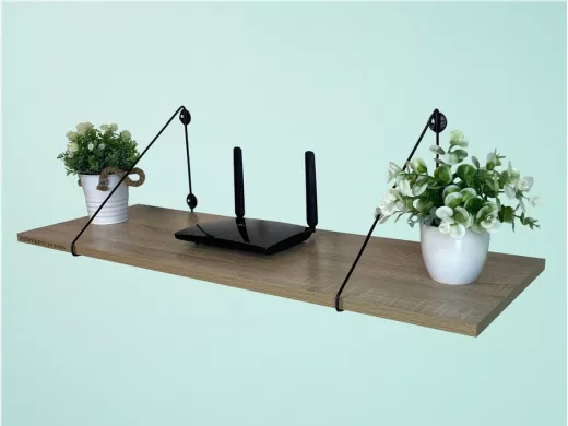 • Полка надежно крепится к стене при помощи анкеров или шурупов с дюбелями, на ней можно разместить роутер