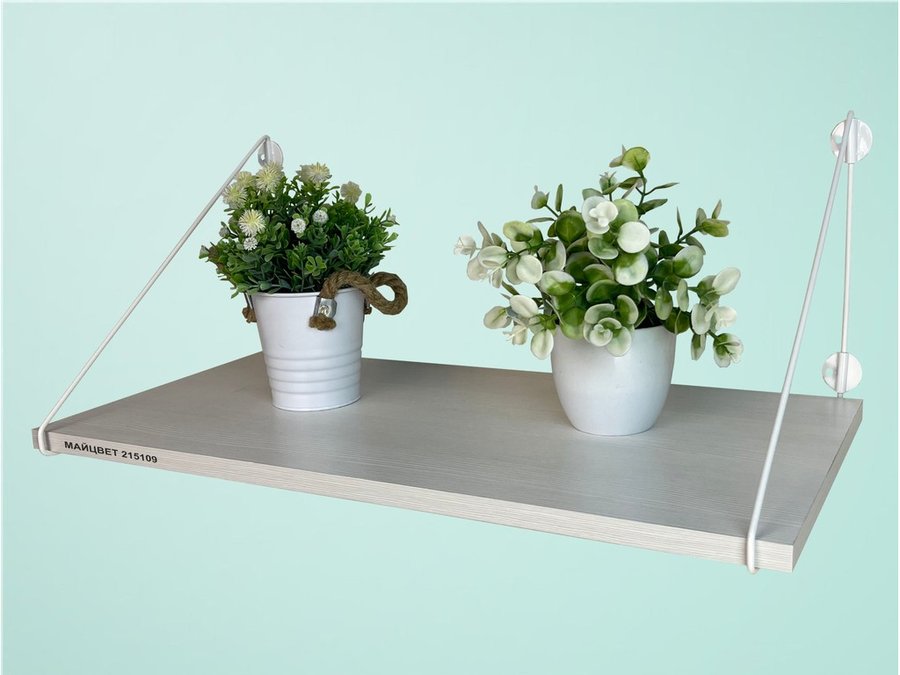 Полка выдержит тяжелые цветочные горшки с растениями, фоторамки, книги, сувениры и много другое.
