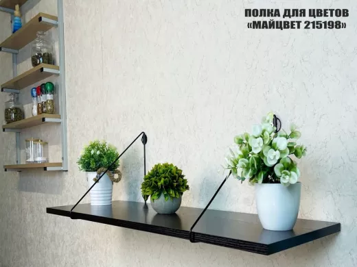 • Полка выдержит тяжелые цветочные горшки с растениями, фоторамки, книги, сувениры и много другое.