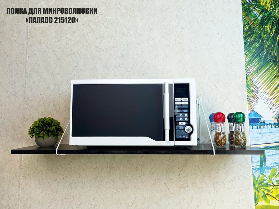 Полка для микроволновки размер 90х30 см "ПАПАОС 215120" высота 26 см белый и венге