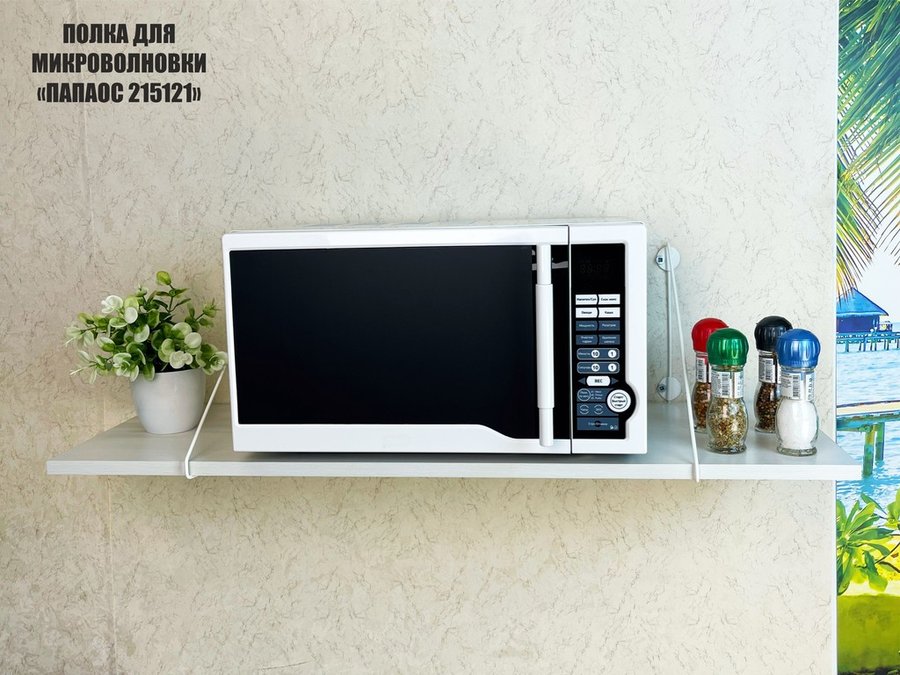 Полка для микроволновки размер 90х30 см "ПАПАОС 215121" высота 26 см белый и сосна выбеленная