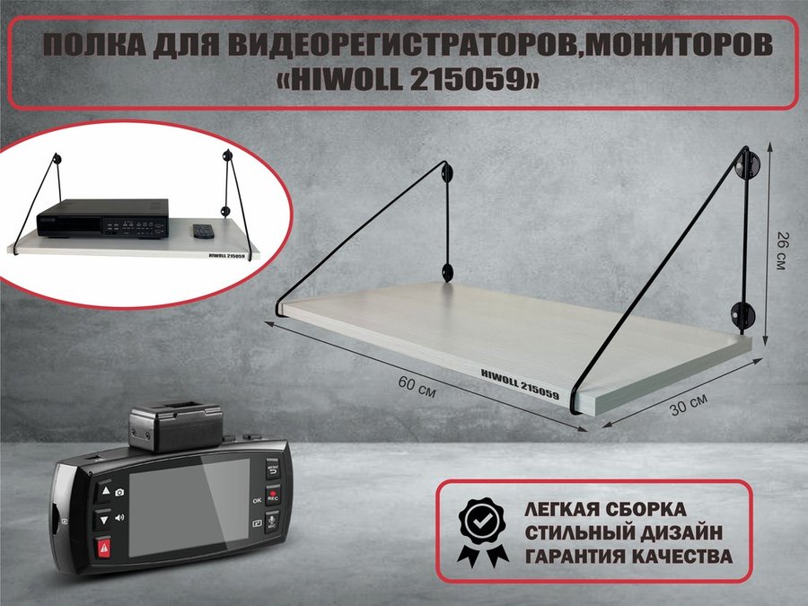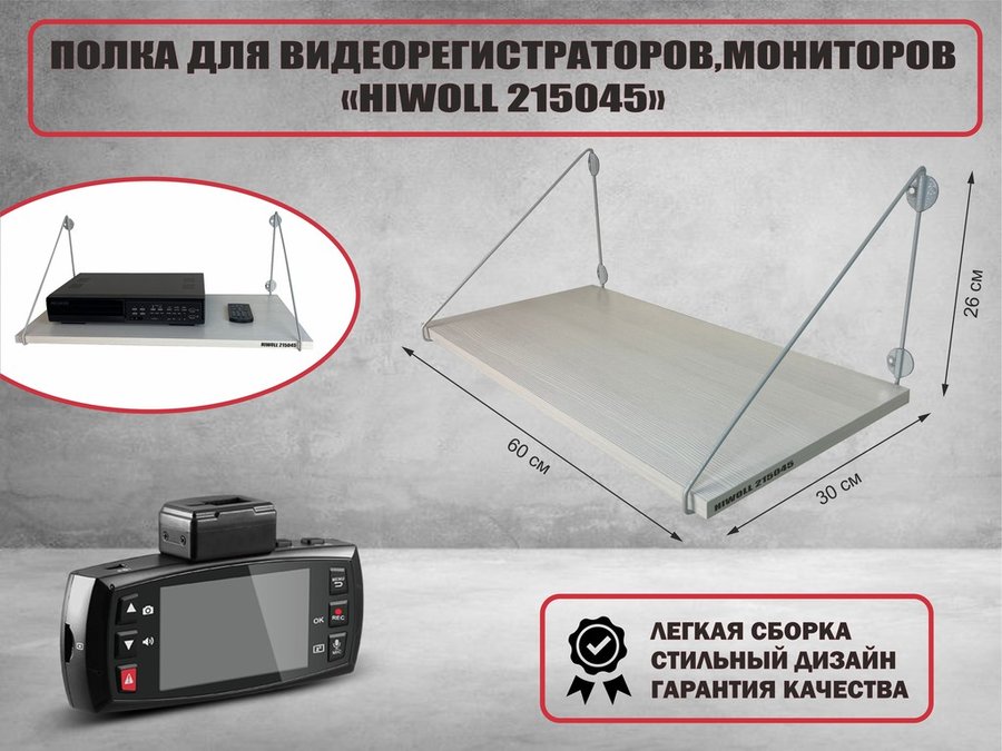 В корзину Купить в 1 клик Полка для видеорегистратора и монитора "HIWOLL 215037" высота 26см размер 60х30 серый,шагрень белая