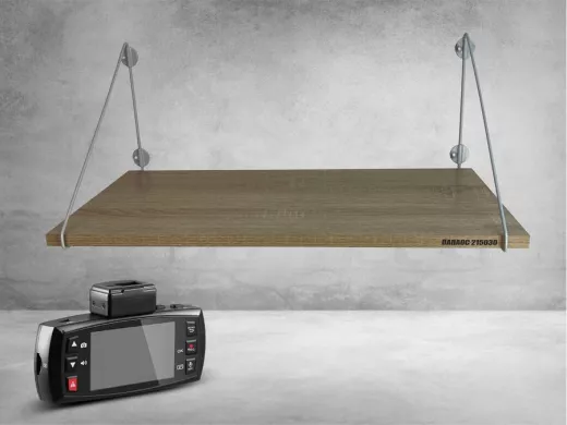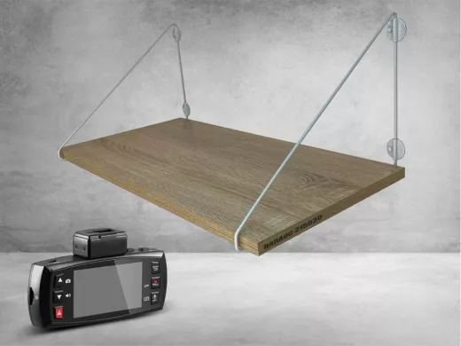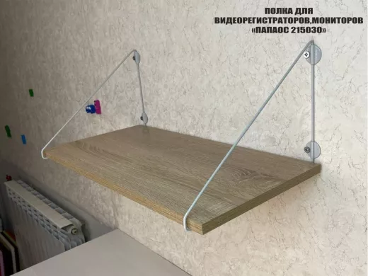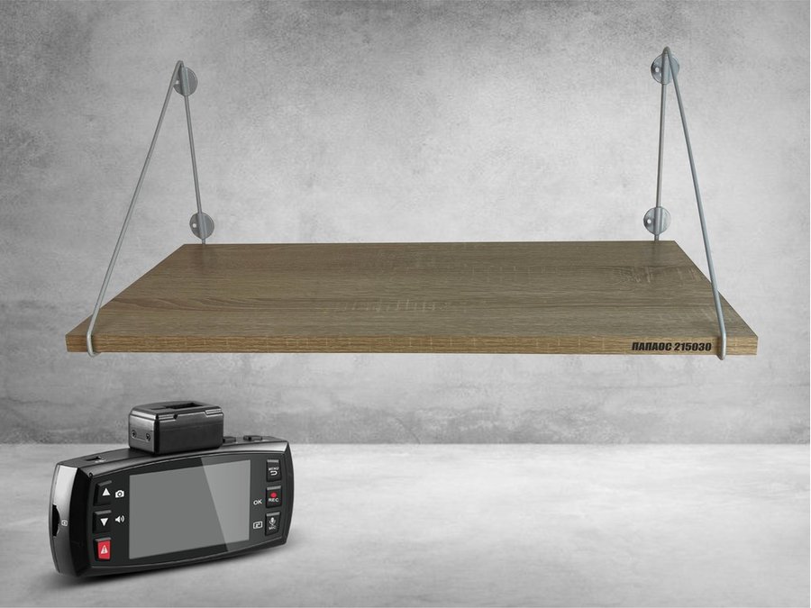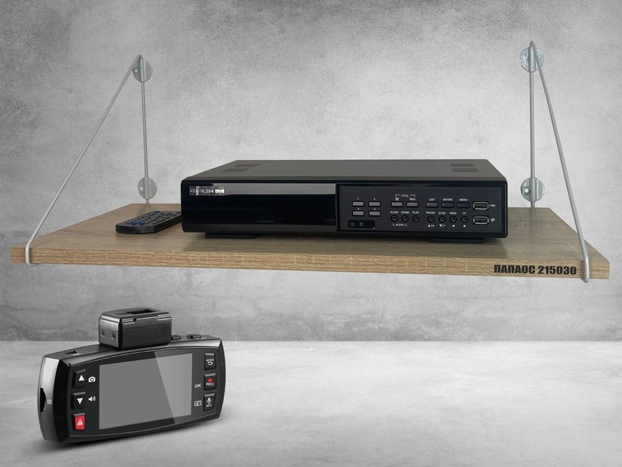 Полка надежно крепится к стене при помощи анкеров или шурупов с дюбелями, на ней можно разместить видеорегистратор, монитор и многое другое