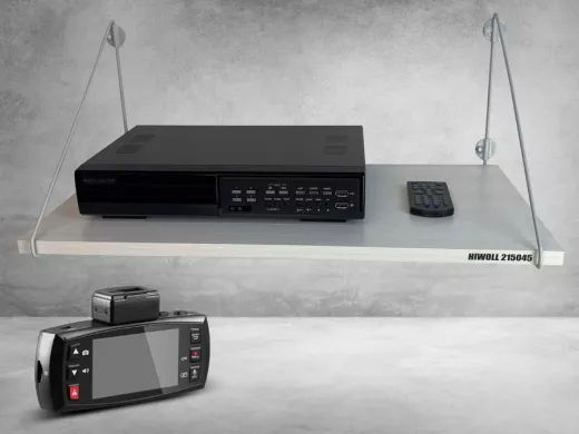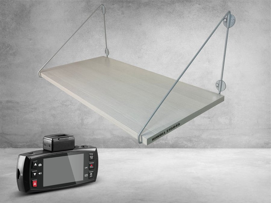 • Полка надежно крепится к стене при помощи анкеров или шурупов с дюбелями, на ней можно разместить видеорегистратор, монитор и многое другое