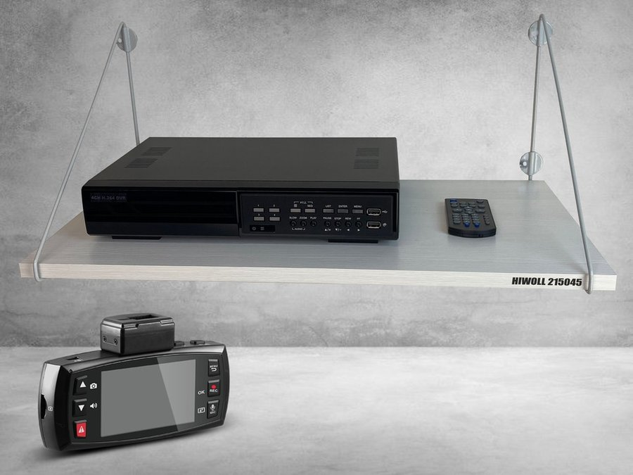В корзину Купить в 1 клик Полка для видеорегистратора и монитора "HIWOLL 215045" высота 26 см размер 60х30 см серый и сосна