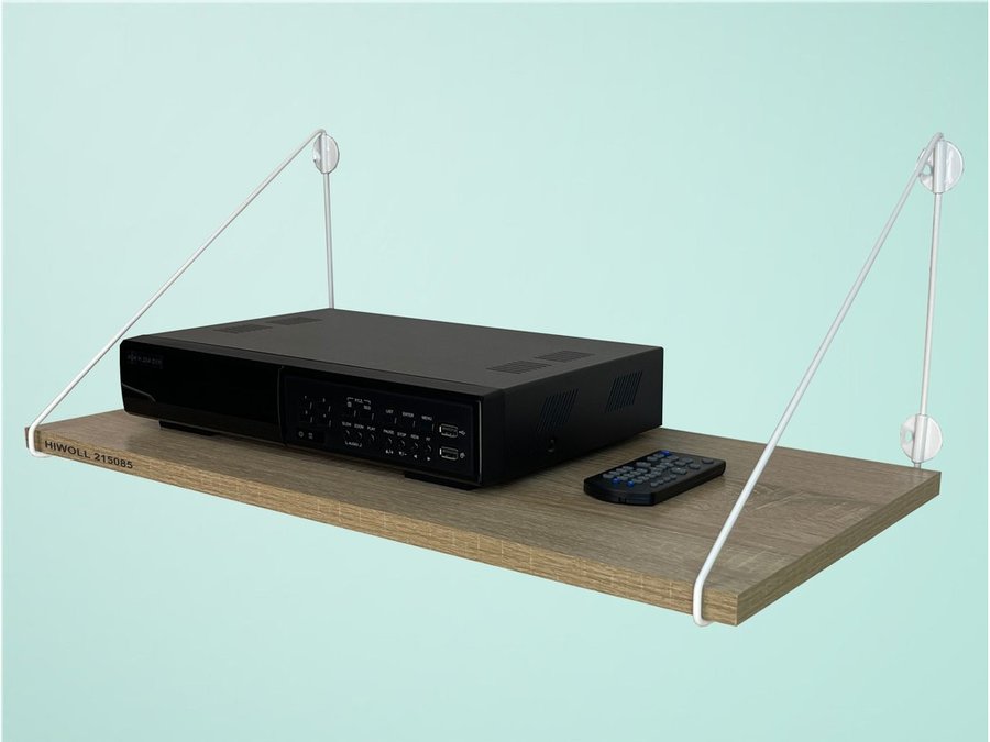 Полка для видеорегистратора и монитора "HIWOLL 215085" высота 26 см размер 60х30 см белый и дуб