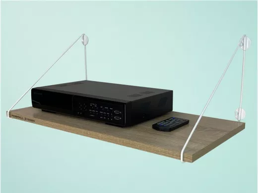- Полка надежно крепится к стене при помощи анкеров или шурупов с дюбелями, на ней можно разместить видеорегистратор, монитор и многое другое