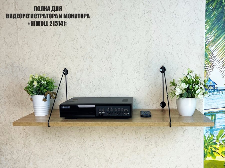 Полка для видеорегистратора и монитора "HIWOLL 215141" высота 26 см размер 90х30 см черный и дуб