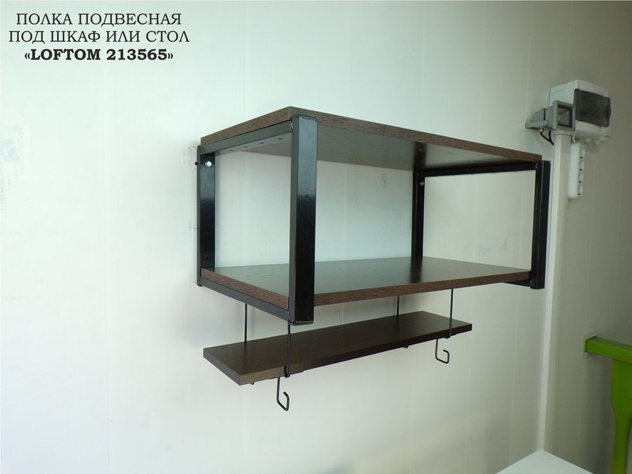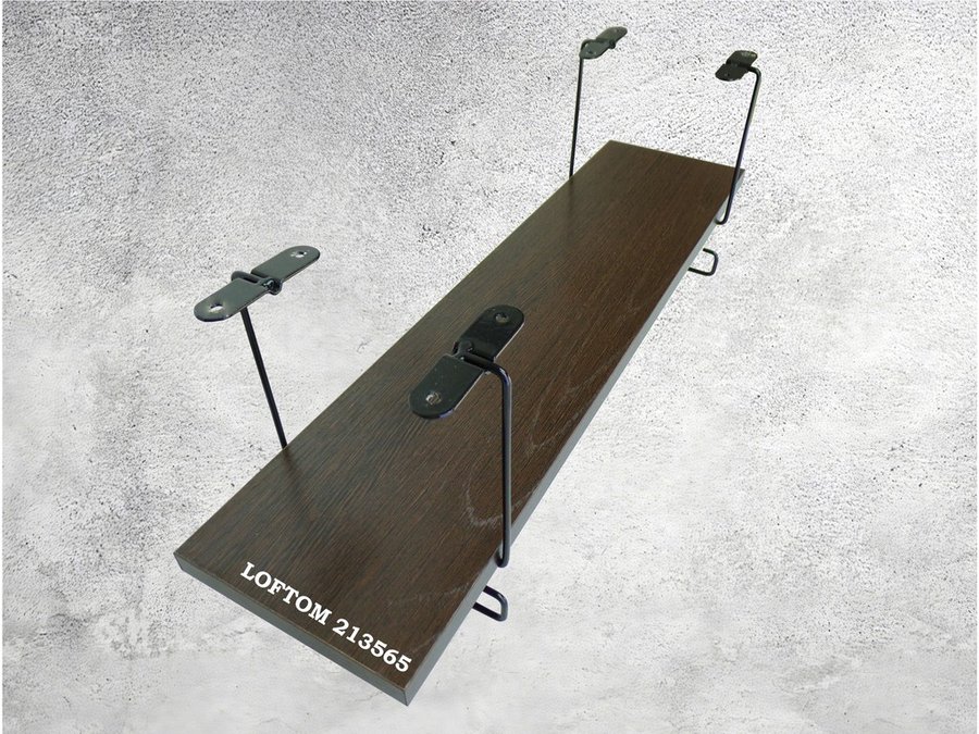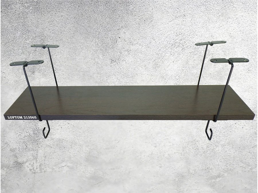 Полка подвесная под шкаф или стол черная, 60х15 см, венге "LOFTOM 213565" высота 15см, с крючками