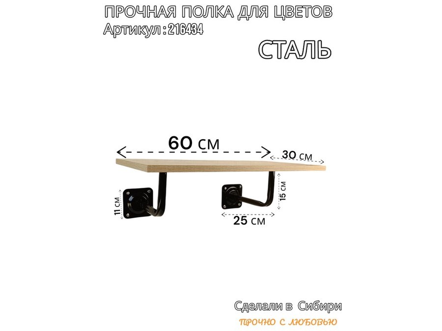 В корзину Купить в 1 клик Полка для цветов пьедестальная с двумя крон. 20 x 30 черная "LOFTOM-216434" дуб сонома, 0,6м х 0,3м