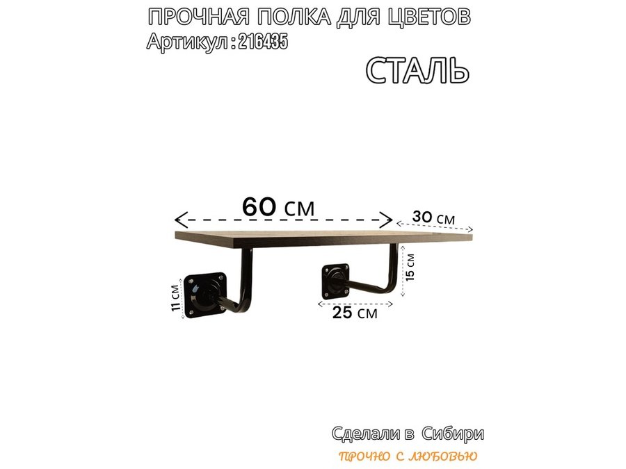 В корзину Купить в 1 клик Полка для цветов пьедестальная с двумя крон. 20 x 30 черная "LOFTOM-216435" венге, 0,6м х 0,3м