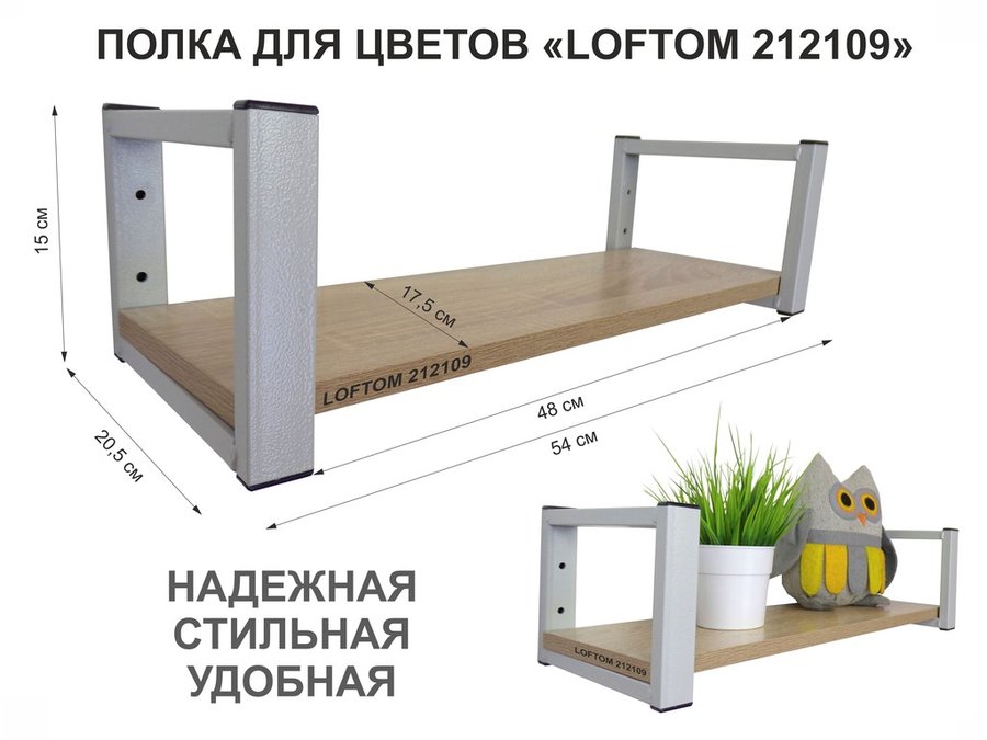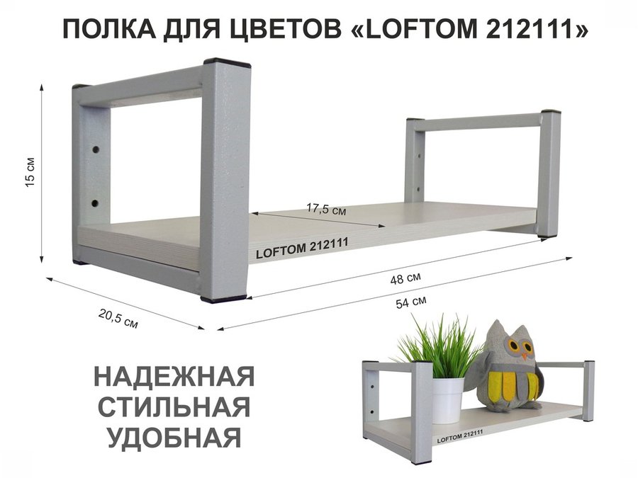 . Полки для цветов "LOFTOM" высота 15 см, с 1 полкой 54х17,5 см