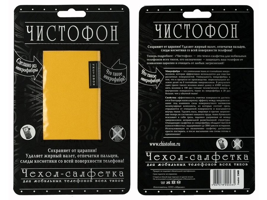 В корзину Купить в 1 клик Чехол-салфетка для моб. тел. ЧИСТОФОН, жёлтый CMY