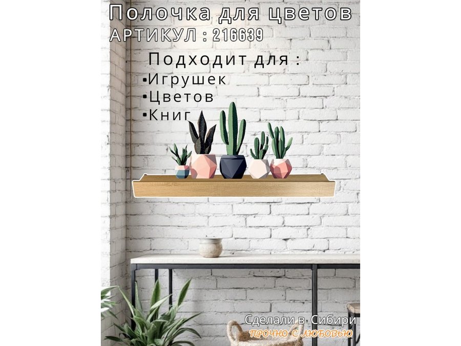 В корзину Купить в 1 клик Настенная полка с бортиком для цветов "ЯиСАД-216639" высота 10 см, 120х15см, дуб сонома, черный